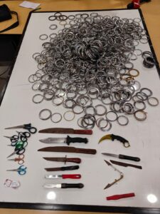 आरोपियों के कब्जे से लगभग एक दर्जन से अधिक चाकू व कैंची किया गया जप्त।
